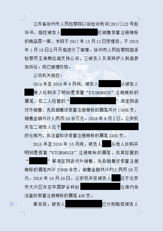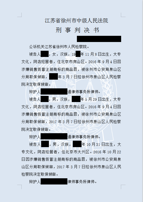 北京網(wǎng)絡(luò)銷售假冒注冊商標(biāo)的產(chǎn)品判決書